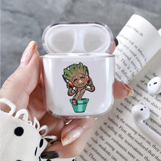 Little Groot Listening to Music Protective Clear Case Cover For Apple Airpods
