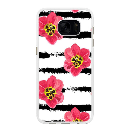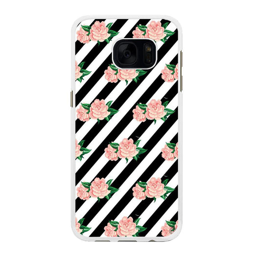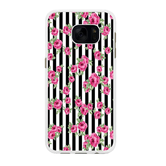 Girly Pink Rose Black Stripe Samsung Galaxy S7 Edge Case